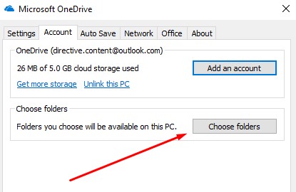 - Select the Account tab, and select Choose folders