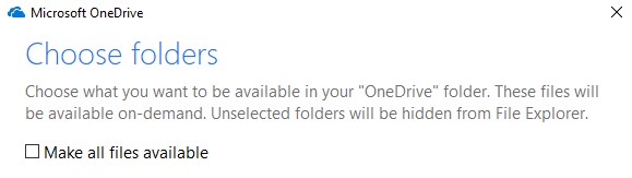 - You have to make sure the “Make all files available” box is toggled off: